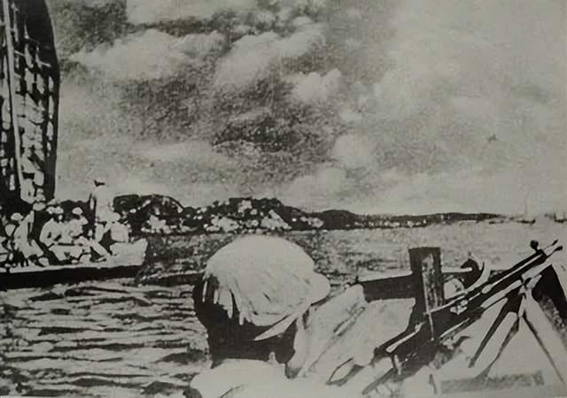 ◆91师官兵乘船向厦门鼓浪屿发起攻击。